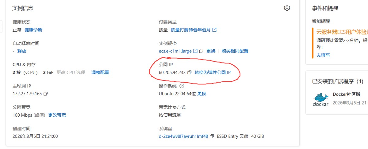 咱们通过访问自己的服务器公网IP来检验自己的程序是否可以正常运行: