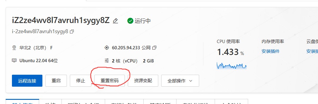 第一次使用服务器先重置密码: