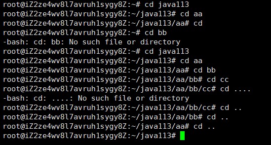 # 返回上级⽬录 cd .. # 进⼊⽤⼾家⽬录 cd ~ # 返回最近访问⽬录 cd -