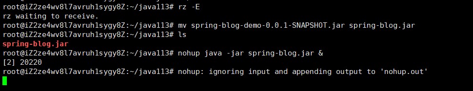直接拖动打包好的jar包到Xshell窗口即可: