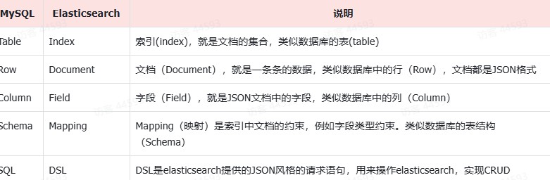 我们统一的把mysql与elasticsearch的概念做一下对比