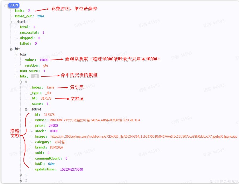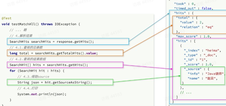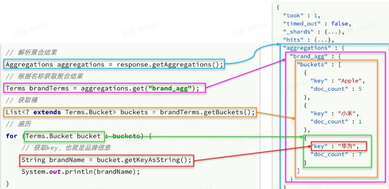 聚合结果与搜索文档同一级别,因此需要单独获取和解析。具体解析语法如下: