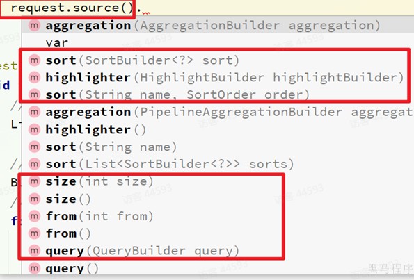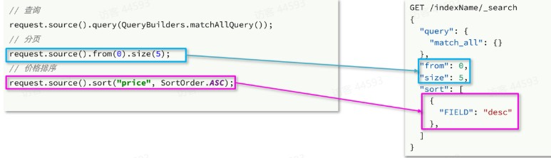 可以看到在DSL中,aggs聚合条件与query条件是同一级别,都属于查询JSON参数。因此依然是利用request.source()方法来设置。