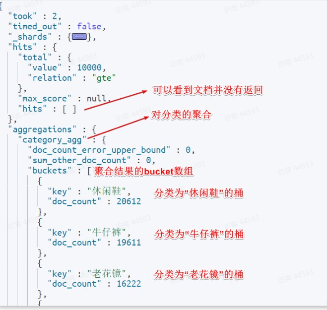 }size:设置size为0,就是每页查0条,则结果中就不包含文档,只包含聚合aggs:定义聚合category_agg:聚合名称,自定义,但不能重复terms:聚合的类型,按分类聚合,所以用termfield:参与聚合的字段名称size:希望返回的聚合结果的最大数量