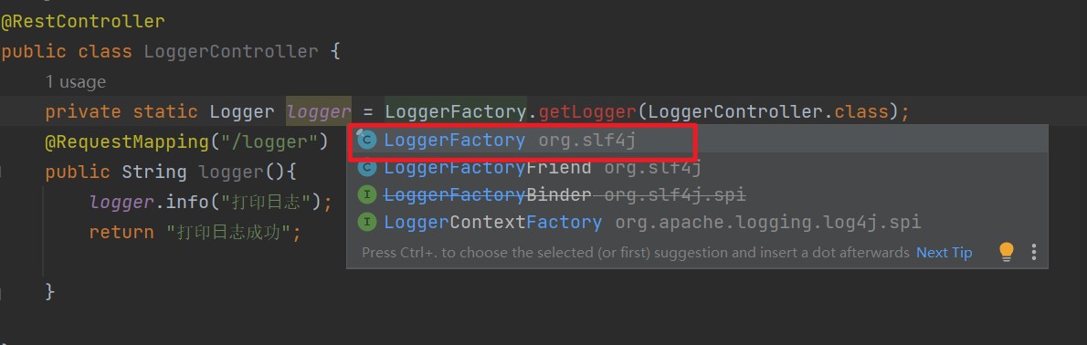 private static Logger logger = LoggerFactory.getLogger(LoggerController.class);//一般为固定代码