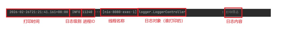 可以看到,我们通过 System.out.print 打印的日志,比 SpringBoot 打印的日志缺少了很多信息.
