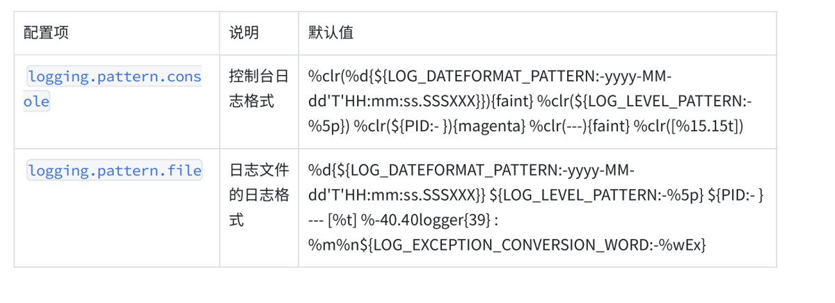 console: "%clr(%d{yyyy-MM-dd HH:mm:ss.SSS}){faint} %clr(%5p) %clr([%15.15t]){magenta} %clr(%-40.40logger{39}){cyan} %clr(:){faint} %m%n"