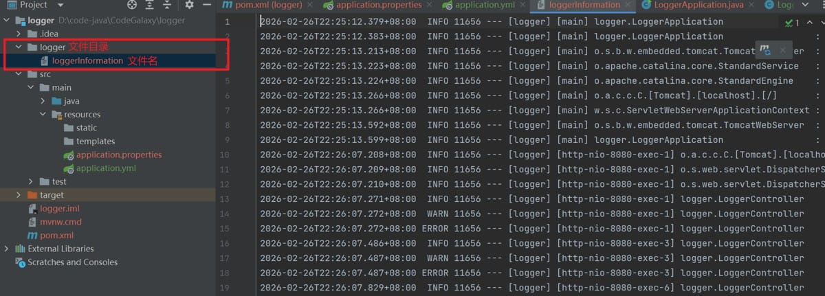 注意: logging.file.name:不仅能设置日志文件的路径,还能设置文件名称