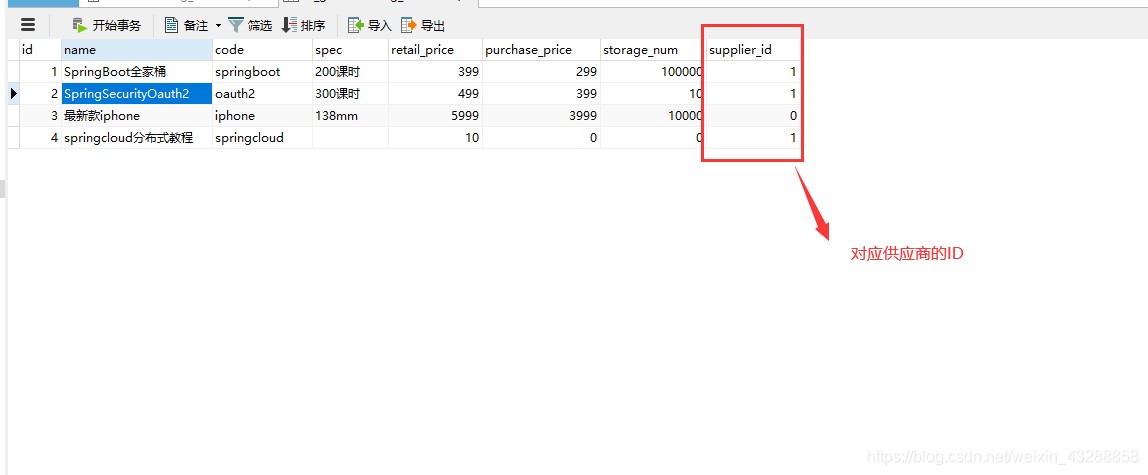 实现商品表,通过表内的id关联查询到供应商表的name属性