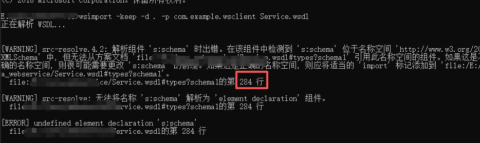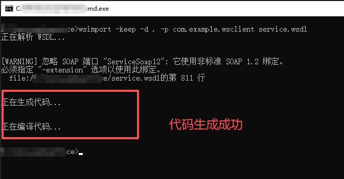 注意这里如果提示wsdl文件中有错误,那么就打开这个文件修改不对的地方,重新生成即可。