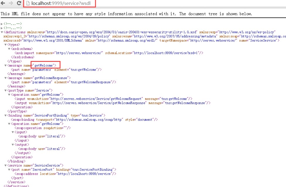 页面显示 WSDL 内容 → 右键另存为 → 保存为 service.wsdl