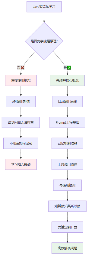 很多新手在学习Java智能体时,直接上手使用LangChain4j、Spring AI等框架,却完全不理解Agent的工作原理。这就像学习开车直接上高速,连油门刹车都不认识。