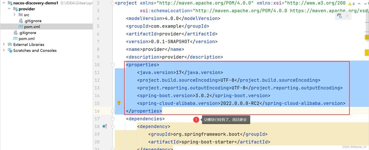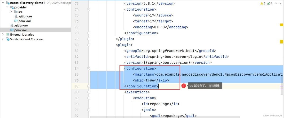 父模块只需要保留 pom.xml,其他文件的全部删除(包括 src)