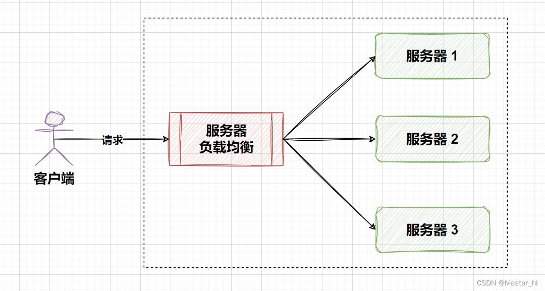 请求先到达一个中介(如负载均衡器设备或者服务,例如Nginx),由这个中介根据配置的策略将请求分发到后端的多个服务器中。它对客户端是透明的,即客户端不需要知道有多少服务器以及它们的存在。