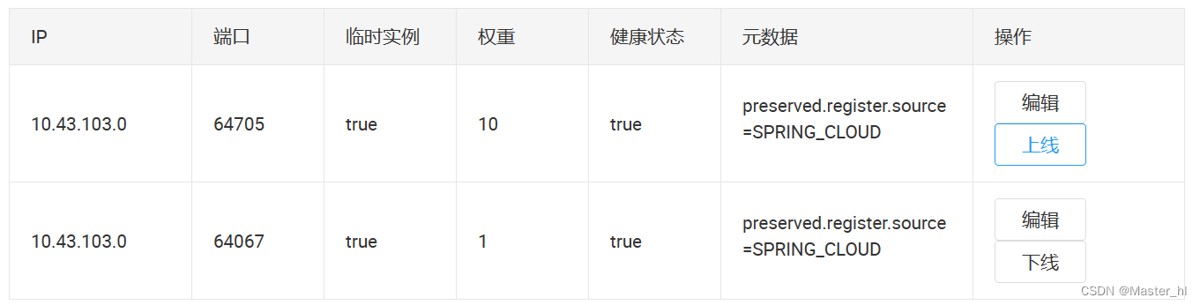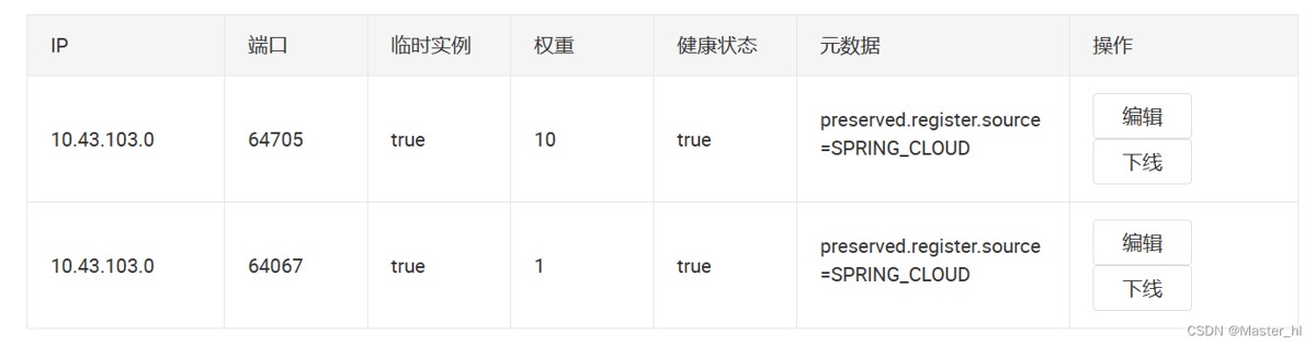 再测试之前,可以先将 Nacos 中一个生产者的权重给设置为 10,一个设置为 1,这样就能明显感受到 Nacos 权重的负载均衡策略了。
