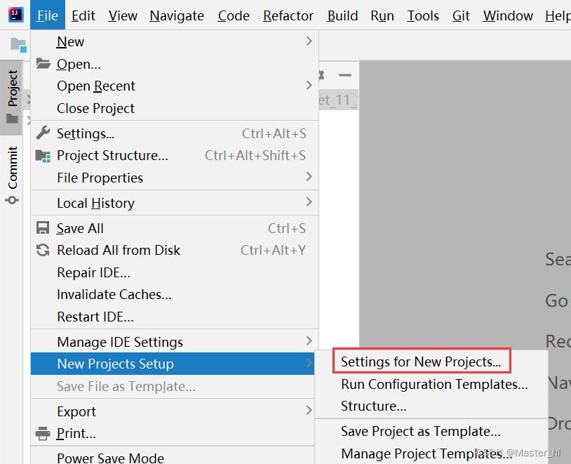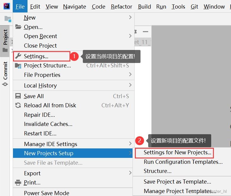 2.1 打开配置界面 (当前项目界面和新项目配置界面)