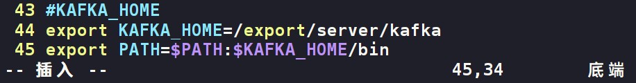 # KAFKA_HOME export KAFKA_HOME=/export/server/kafka export PATH=$PATH:$KAFKA_HOME/bin