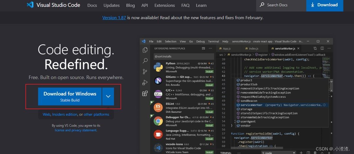 VSCode官网:https://code.visualstudio.com/