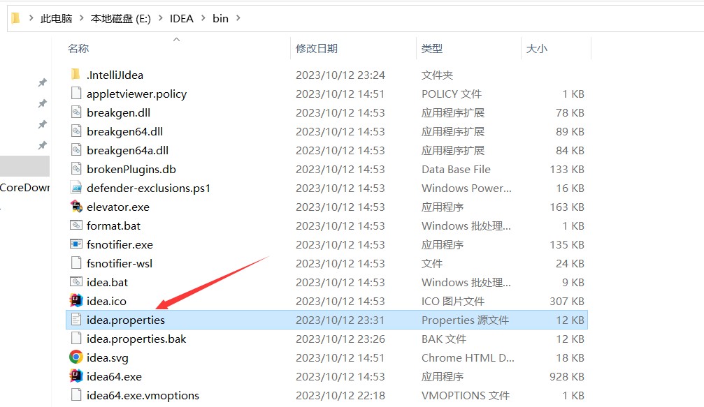 1、在 IDEA 安装目录的bin目录下找到idea.properties文件