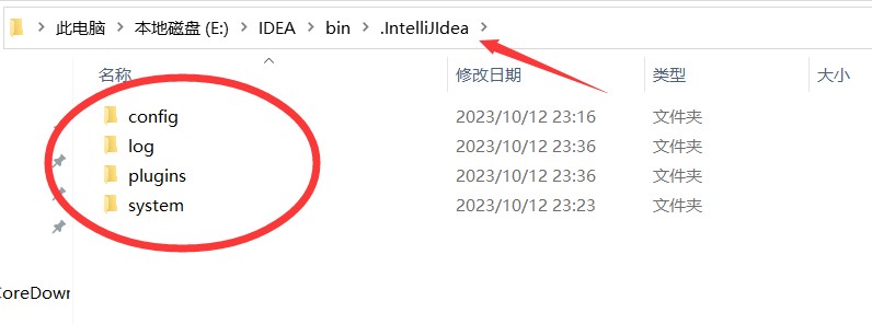 我在同一目录下新建.IntelliJIdea的文件夹.IntelliJIdea,在该文件夹下有新建plugins、logs、system、config这四个文件夹,分别用于存放 IDEA 的插件、日志、配置信息等。