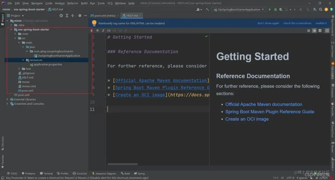 - IDE直接启动:找到主类 OSSApplication,执行 main 方法启动应用