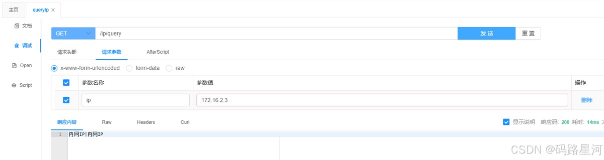 - 内网IPv4测试(172段):http://localhost:8080/api/ip/query?ip=172.16.2.3