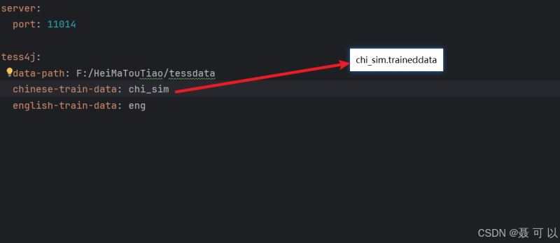 server: port: 11014 tess4j: data-path: F:/HeiMaTouTiao/tessdata chinese-train-data: chi_sim english-train-data: eng
