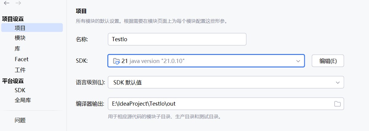 在「项目结构」左侧选择「项目设置 → 项目」;