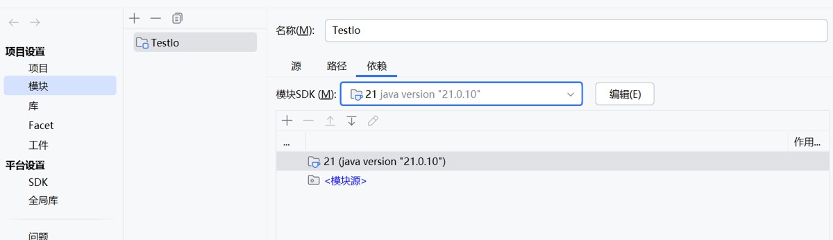 打开项目中的任意 Java 类,点击顶部「文件 → 项目结构 → 模块」,确认模块 SDK 一致。
