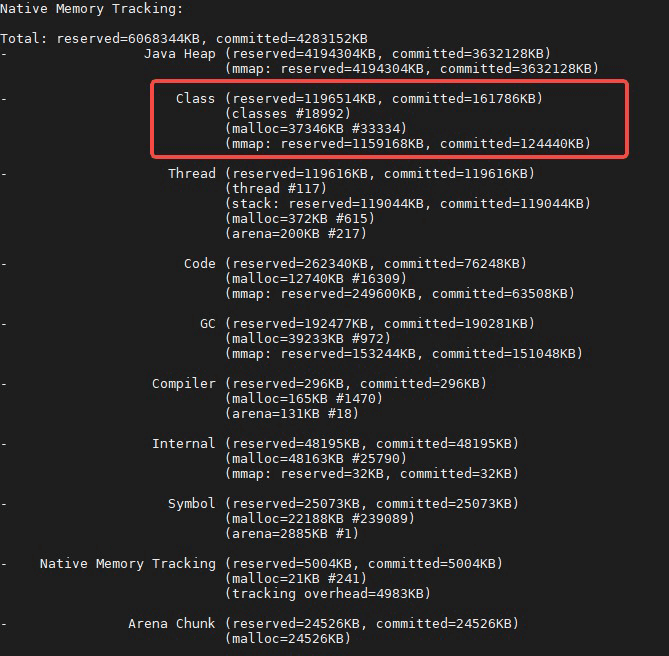 -XX:NativeMemoryTracking=summary -XX:MaxMetaspaceSize=256m -XX:+TraceClassLoading -XX:+TraceClassUnloading
