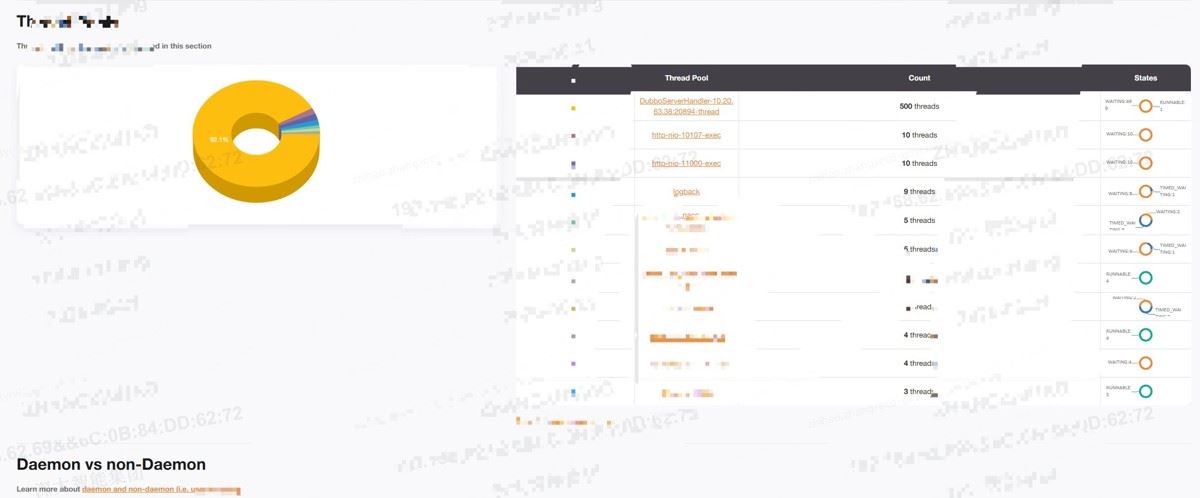 其中dubbo线程占据90%,其余线程比如tomcat线程,logback线程,自定义线程池线程等只占一小部分