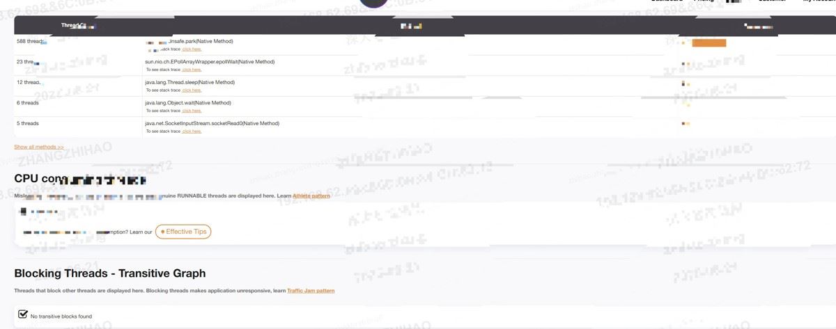 未发现消耗CPU的线程和阻塞线程
