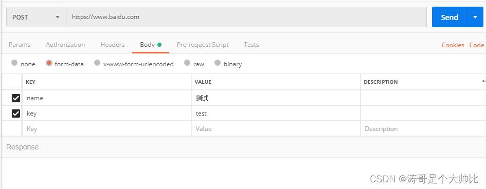开发中遇到对接需求时候,被要求用post请求传form-data数据的时候一脸懵逼,在postman中可以调用,但是程序中怎么调用呢。
