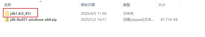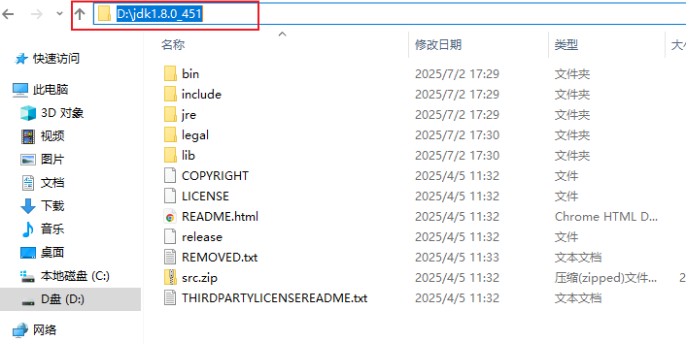 可以把解压后的文件放到我们指定的目录下,这里假设就放到了 D:\jdk1.8.0_451