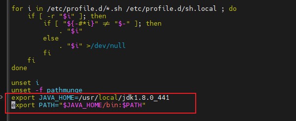 sh -c "echo 'export JAVA_HOME=/usr/local/jdk1.8.0_441' >> /etc/profile" sh -c "echo 'export PATH=\"\$JAVA_HOME/bin:\$PATH\"' >> /etc/profile"
