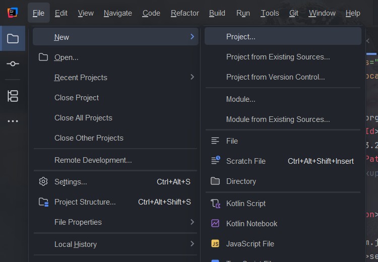 File -->> New -->> Project