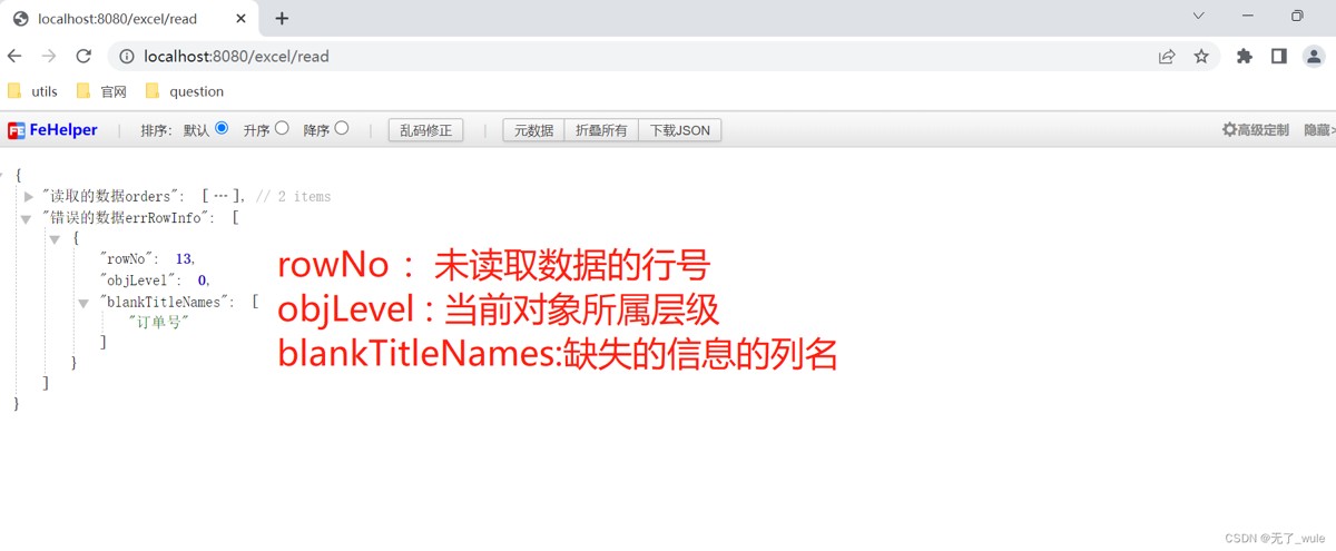 List<IExcelUtils.BlankRowInfo> errRowInfos = IExcelUtils.getErrRowInfo();