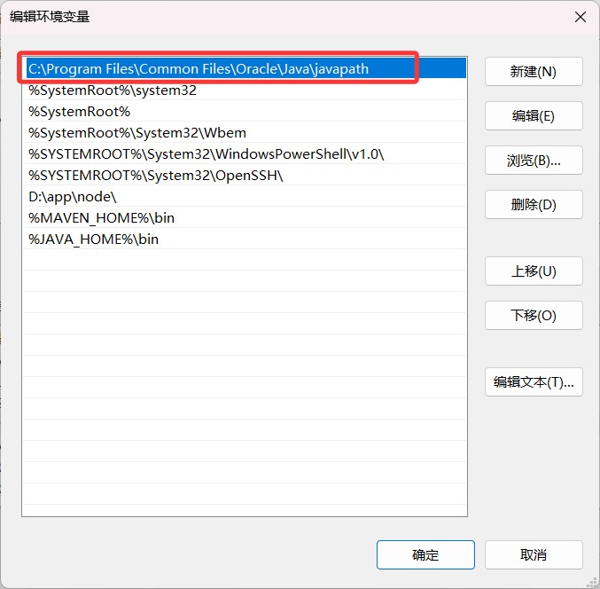 JDK 17 在安装时可能会自动配置环境变量。为避免冲突,需要在 Path 中删除以下自动添加的路径: