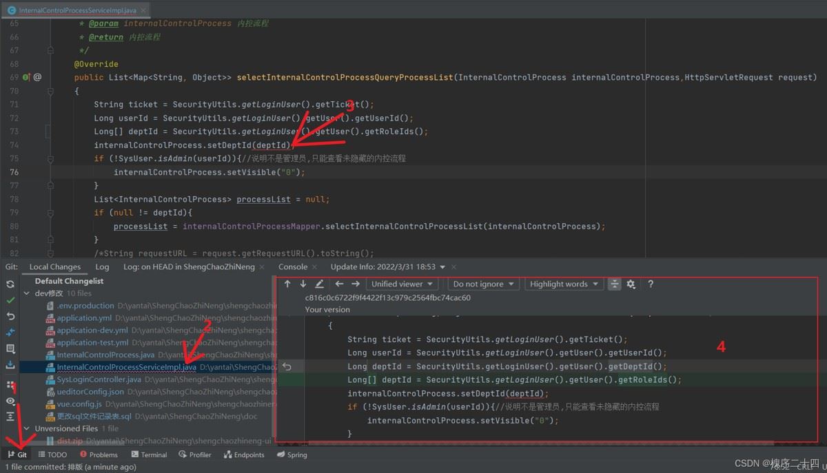 4、查看提交的文件,写日志,提交