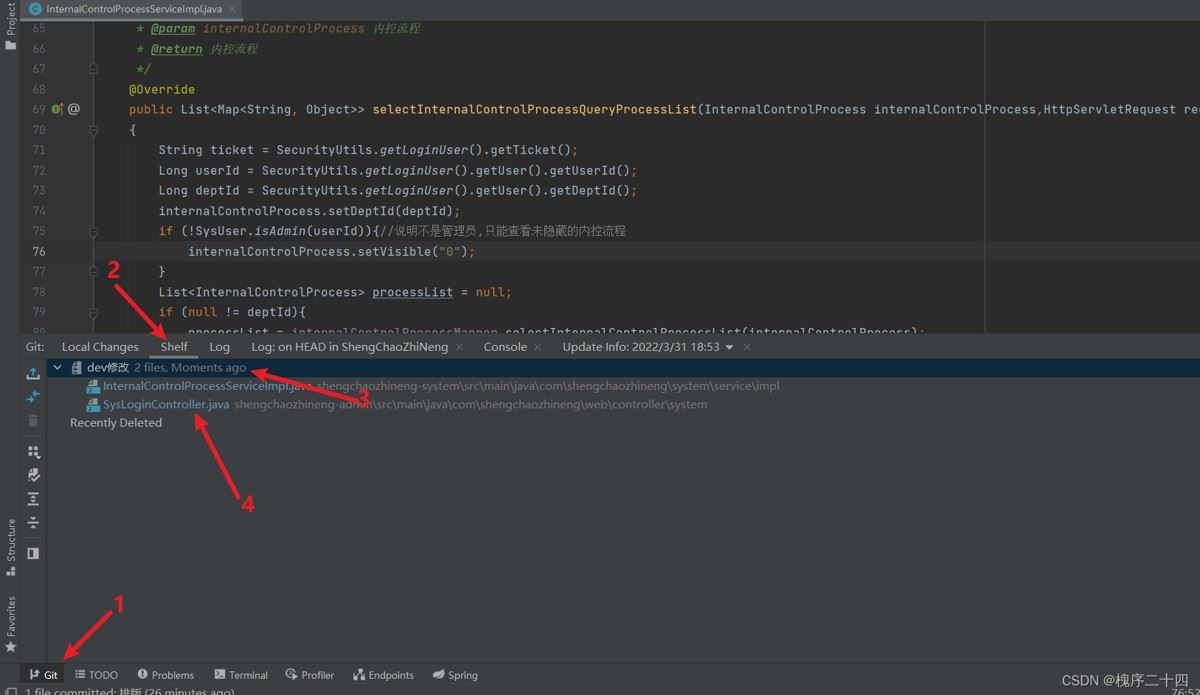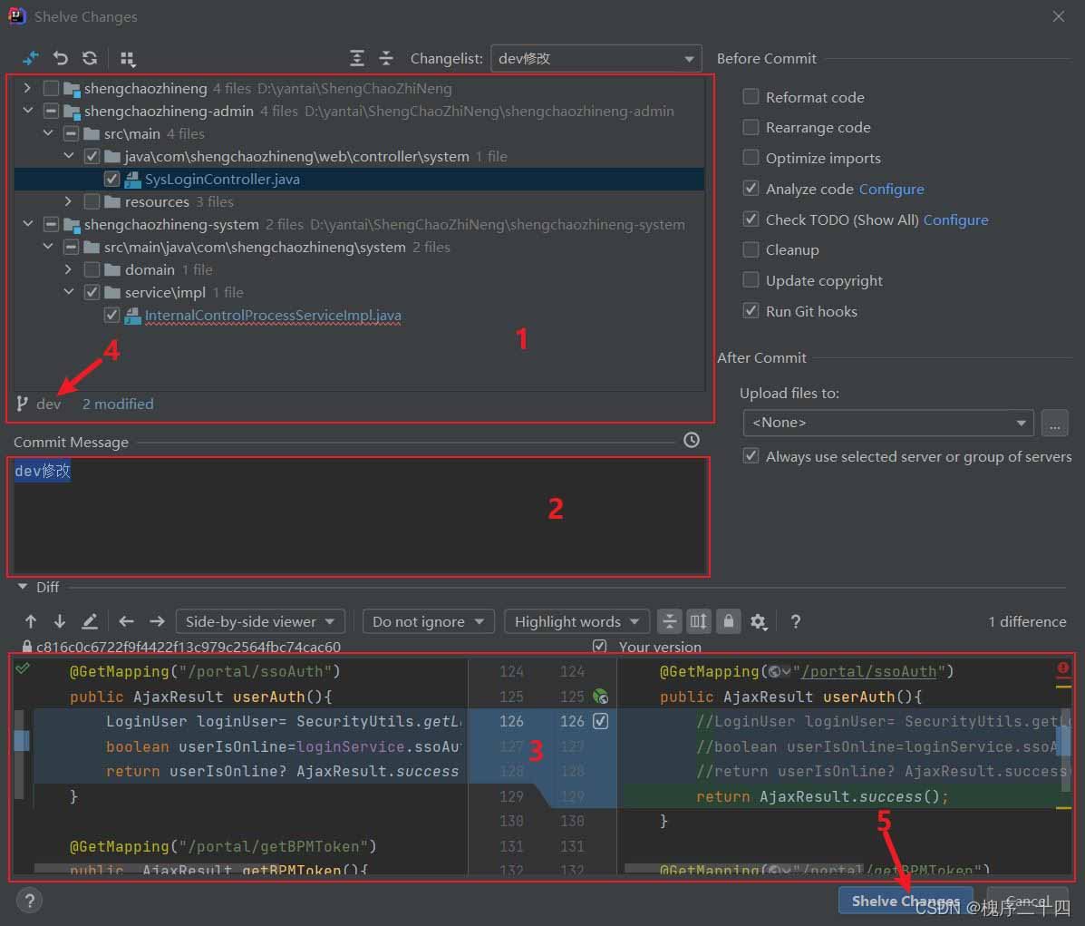 点击 “Shelve Changes… ”