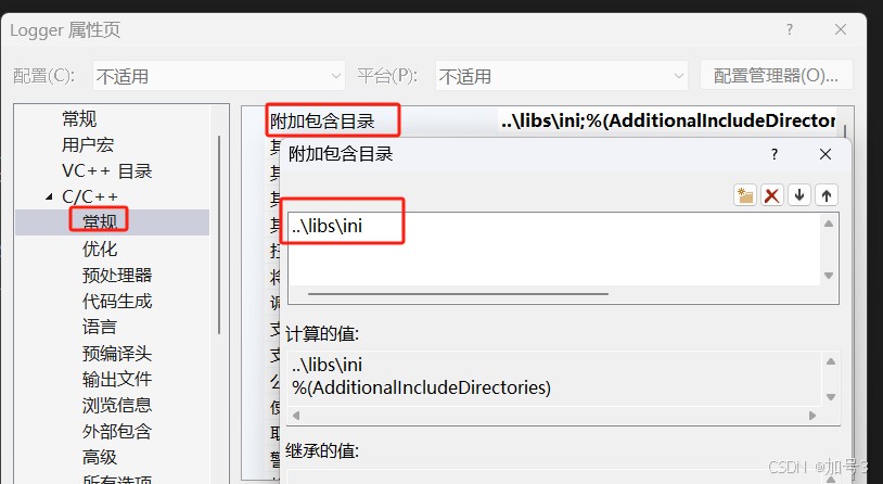 2.3 属性页 → C/C++ → 常规 → 附加包含目录 → 填 $(ProjectDir)\inih(或你放的路径)