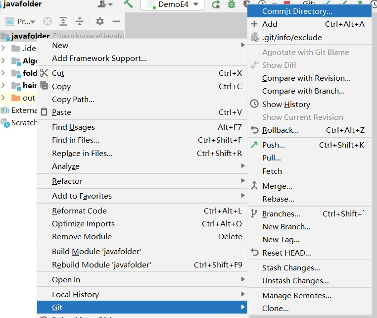 选中上传项目-->鼠标右键-->Git-->Commit Directory