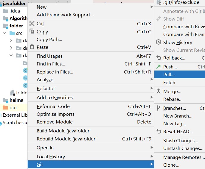 选中项目-->鼠标右键-->Git-->Repository-->pull