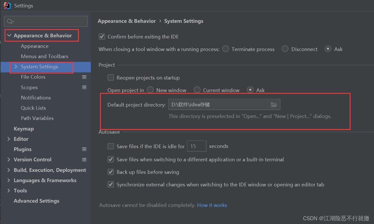 idea项目保存位置设置