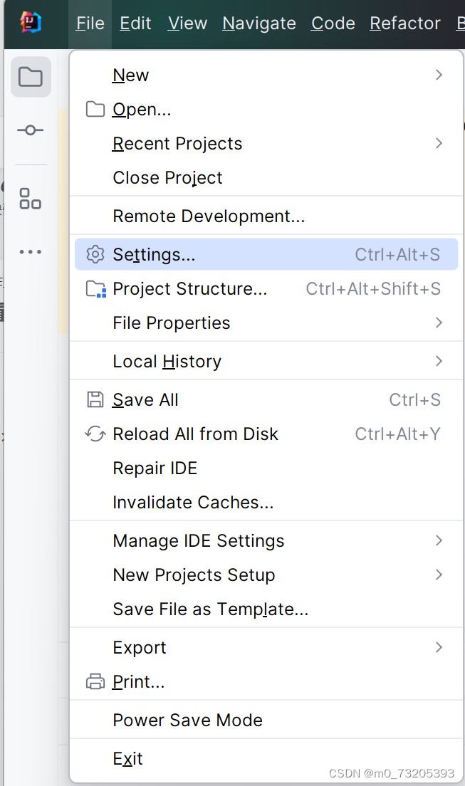 打开IDEA,任选一个项目,在左上角File >setting打开设置