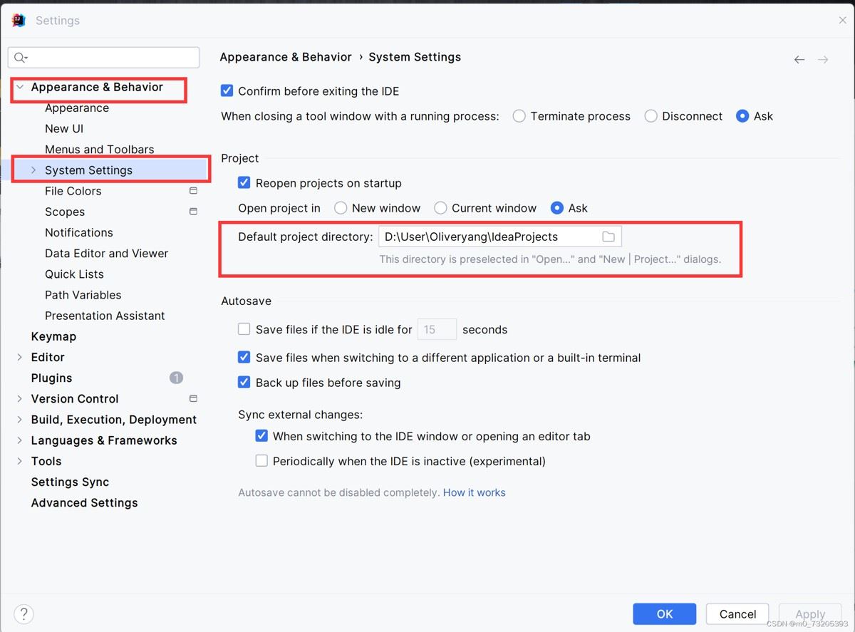 本文主要介绍了如何在IDEA中设置默认项目目录,首先打开IDEA设置界面,任选一个项目,然后在弹出的设置界面中选择Appearance下的Default project directory,选择想要的位置设置好后,点击apply和OK即可