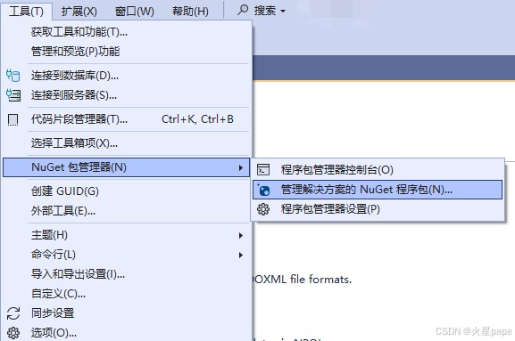 //工具 → “管理NuGet程序包” → 搜索NPOI(Tony Qu,NPOI Contributors)→ 安装版本 2.7.6 using NPOI.HSSF.UserModel; using NPOI.SS.UserModel; using NPOI.XSSF.UserModel; using System; using System.Collections.Generic; using System.Data; using System.Diagnostics; using System.Drawing; using System.IO; using System.Runtime.InteropServices; using System.Text; using System.Windows.Forms;
