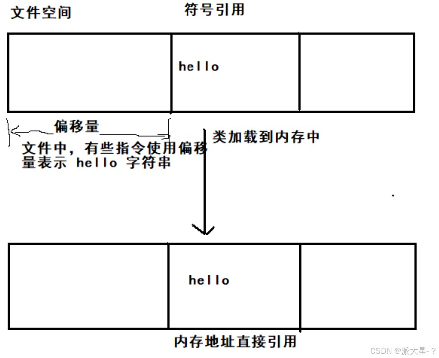符号引用 其实就是指(字符串常量已经在 .class文件中)文件中 符号的位置,就是偏移量。