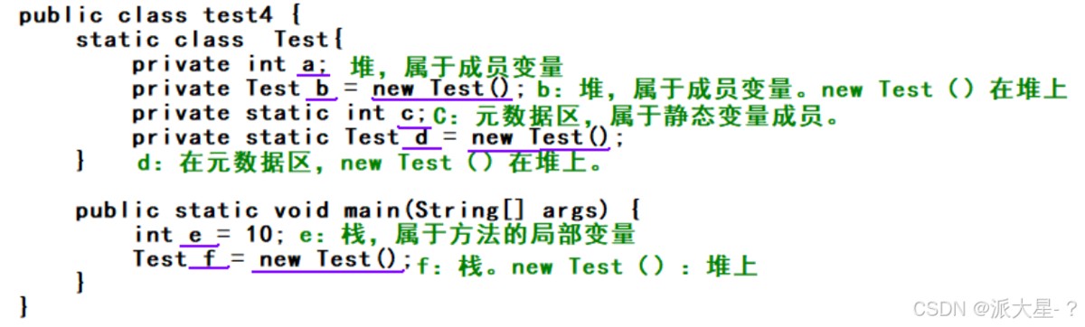 - 静态成员变量:元数据区(方法区)
