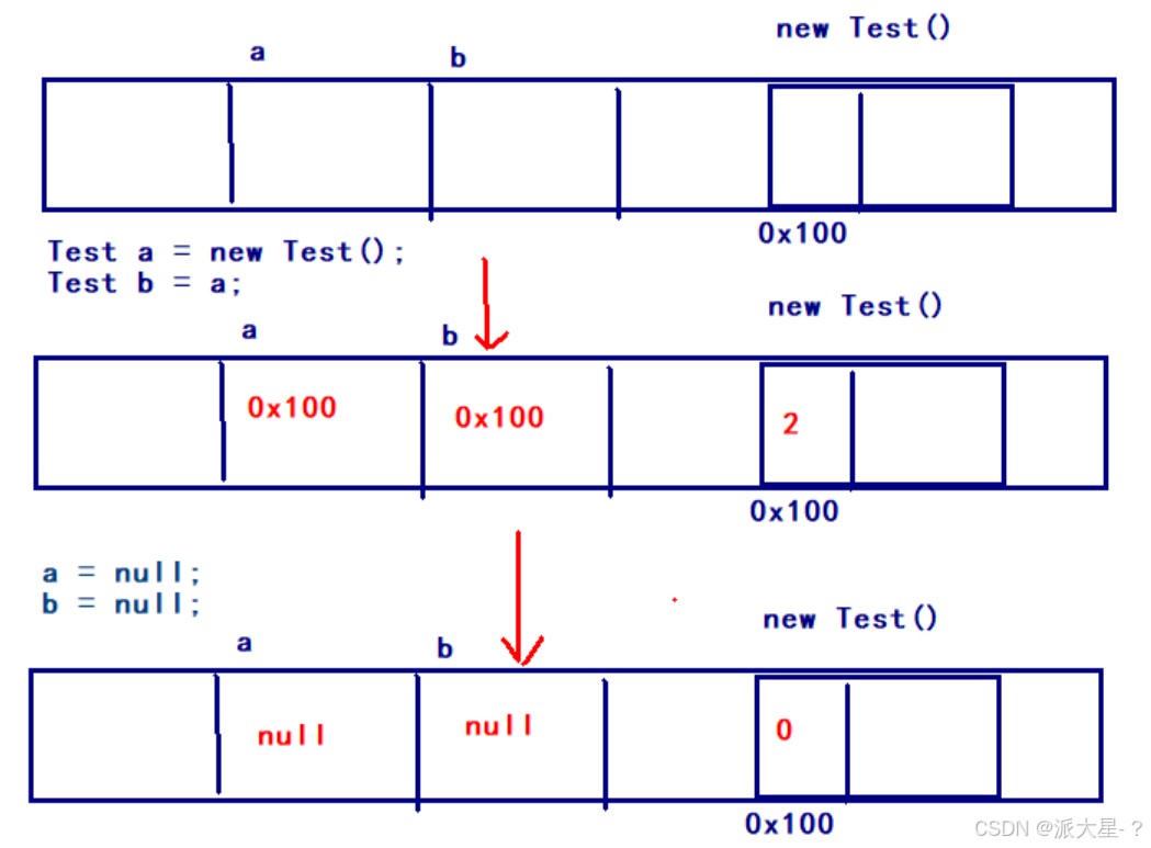 - 每减少一个引用,计数器-1,如果计数器为0,此对象就垃圾了需要回收。